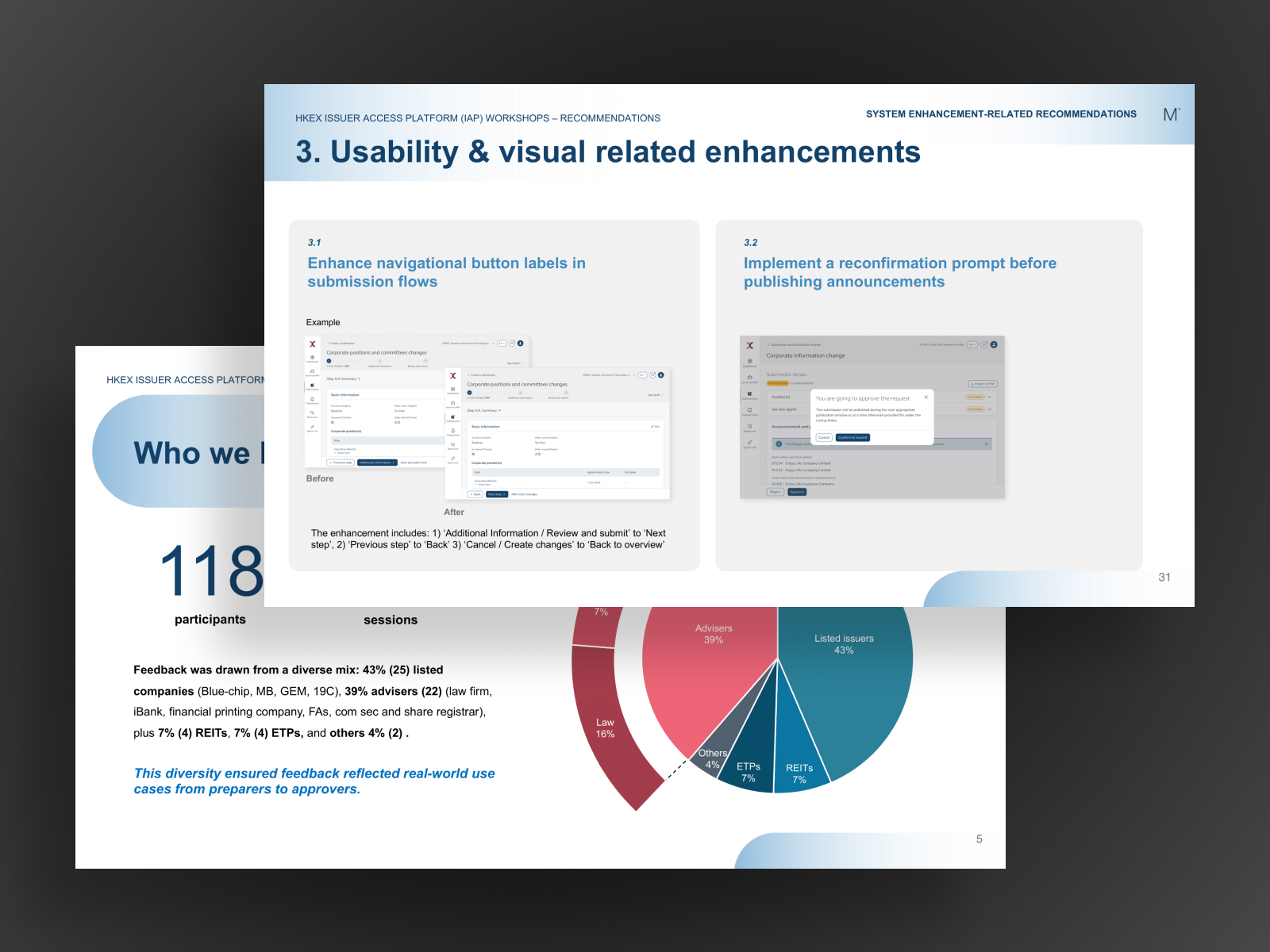 Usability testing for the Hong Kong Stock Exchange issuer access platform on regulatory matters.