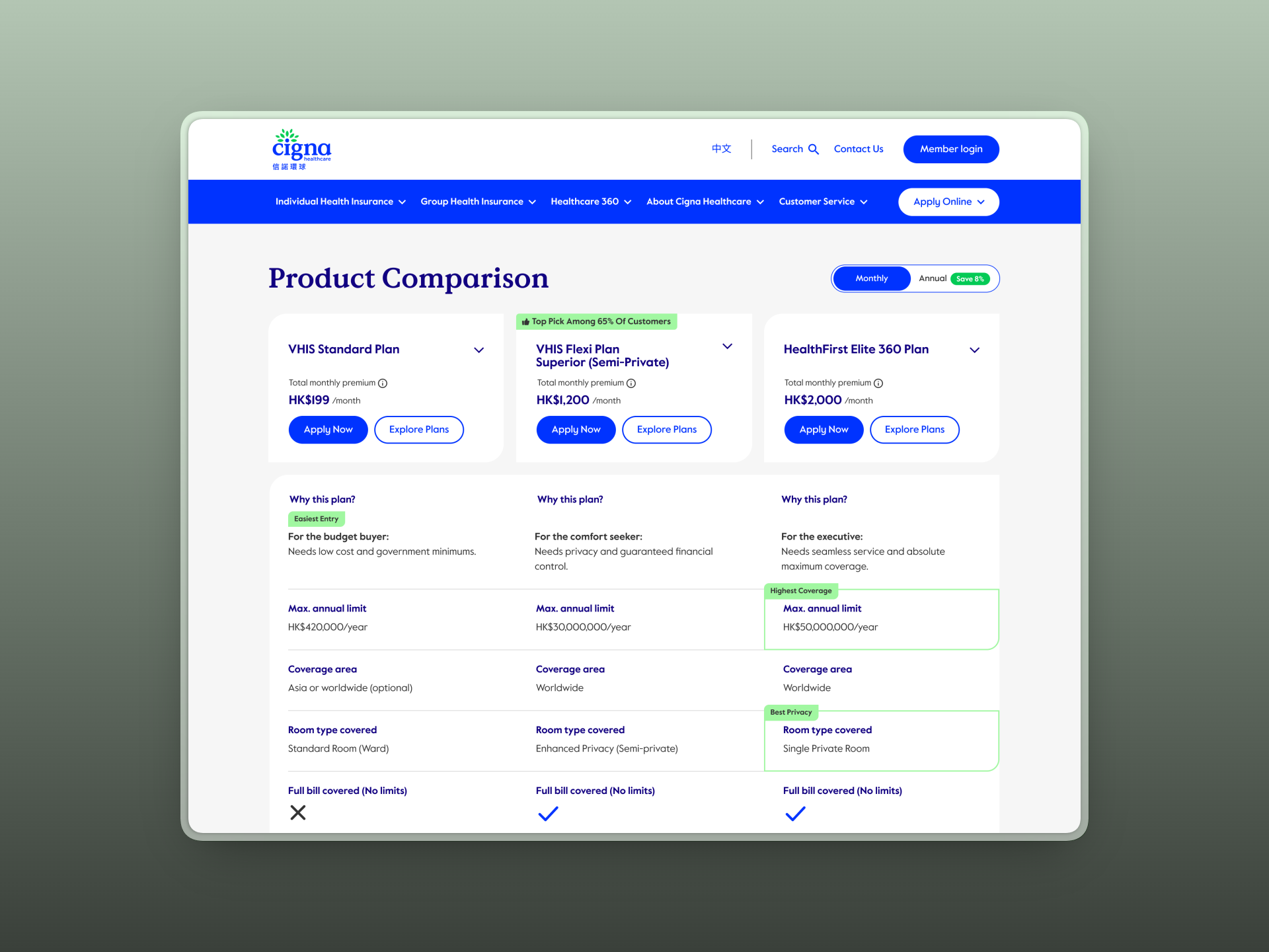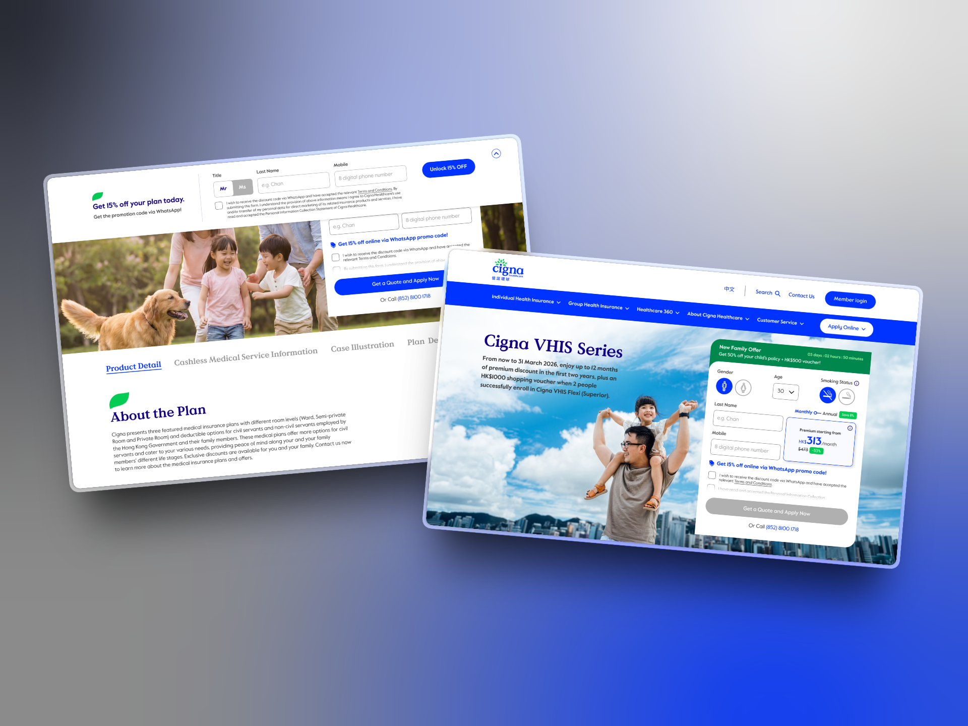The redesign transformed the insurance eSales journey across VHIS, Elite, and Plus products. We turned the lengthy underwriting questionnaire into a friction-free online application, and introducing first-step lead capture to begin customer engagement the moment they land.